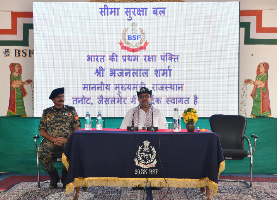 मुख्यमंत्री भजनलाल शर्मा ने कहा कि सीमा सुरक्षा बल के जांबाज हर तरह की परिस्थितियों में अड़िग रहकर दिन-रात हमारी सीमाओं की रक्षा में तत्पर रहते हैं। उन्होंने कहा कि सीमाओं की सुरक्षा के साथ ही कानून व्यवस्था, अपराध की रोकथाम, सामाजिक समरसता बनाए रखने और आपदा प्रबंधन में बीएसएफ के जांबाज हर मोर्चे पर मुस्तैदी से डटे रहते हैं। शर्मा शनिवार को भारत-पाकिस्तान सीमा के निकट स्थित मां तनोट राय मंदिर परिसर में सीमा सुरक्षा बल के जवानों के साथ संवाद कर रहे थे। उन्होंने बीएसएफ के जवानों को शुभकामनाएं देते हुए कहा कि यशस्वी प्रधानमंत्री श्री नरेंद्र मोदी के नेतृत्व में हमारे वीर जवानों ने ऑपरेशन सिंदूर के माध्यम से दुश्मन के छक्के छुड़ाकर हम सबको गौरवान्वित किया है। बीएसएफ और सेना ने ऑपरेशन सिंदूर में दुनिया के सामने बहादुरी का एक अद्वितीय उदाहरण पेश किया है।मुख्यमंत्री ने कहा कि भारत की बीएसएफ ने जल, थल और वायु सुरक्षा इकाइयों का गठन कर दुनिया भर के सभी सीमा सुरक्षा बलों में अग्रणी बनाया है। बीएसएफ आज दुनिया का सबसे बड़ा और प्रतिष्ठित सीमा सुरक्षा बल बनकर उभरा है। उन्होंने कहा कि यशस्वी प्रधानमंत्री श्री नरेन्द्र मोदी के नेतृत्व में सुरक्षा बलों को बेहतर आवास, स्वास्थ्य सुविधाएँ, शिक्षा और आधुनिक उपकरण की उपलब्धता सुनिश्चित की जा रही है। शर्मा ने कहा कि राज्य सरकार ने ऑपरेशन सिन्दूर के दौरान प्रदेश के अंतराष्ट्रीय सीमावर्ती क्षेत्रों में अधिकारियों एवं कर्मचारियों के रिक्त पद भरे तथा लगातार संपर्क बनाए रखा। यहां के नागरिकों से भी देशभक्ति का जज्बा, देशप्रेम और बीएसएफ के कार्यों की सराहना देखने को मिलती है।मुख्यमंत्री ने कहा कि प्रधानमंत्री नरेंद्र मोदी के नेतृत्व में रक्षा क्षेत्र में महत्वपूर्ण कार्य किए हैं तथा हमारी सेना को सशक्त बनाया गया है। वर्ष 2014 के बाद देश में गरीब कल्याण की योजनाओं, सीमाओं की बढ़ती सुरक्षा से लेकर आतंकवाद और नक्सलवाद का खात्मा एवं दुनिया भर में देश का बढ़ता हुआ सम्मान के रूप में अभूतपूर्व परिवर्तन आया है। उन्होंने कहा कि हमारी सरकार प्रधानमंत्री की प्रेरणा से विकास और विरासत के विजन को साथ लेकर कार्य कर रही है। इसी दिशा में शौर्य की धरा पर मां तनोट राय का भव्य और सुंदर मंदिर बनेगा और 200 कमरों का विश्राम गृह भी बनेगा। तनोट यात्रा के दौरान मुख्यमंत्री भजनलाल शर्मा किशनगढ़ फोर्ट पहुंचे। इस दौरान श्री शर्मा ने 1100 वर्षों से अधिक प्राचीन किशनगढ़ फोर्ट के स्थापत्य और सामरिक महत्व की जानकारी ली। सीमा सुरक्षा बल के महानिरीक्षक ने इस फोर्ट के इतिहास एवं सामरिक महत्व के बारे में विस्तार से जानकारी दी।
